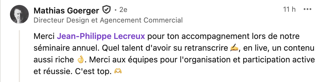 Lors de vos séminaires, ateliers ou conférences, je synthétise les idées clés sous forme de visuels.